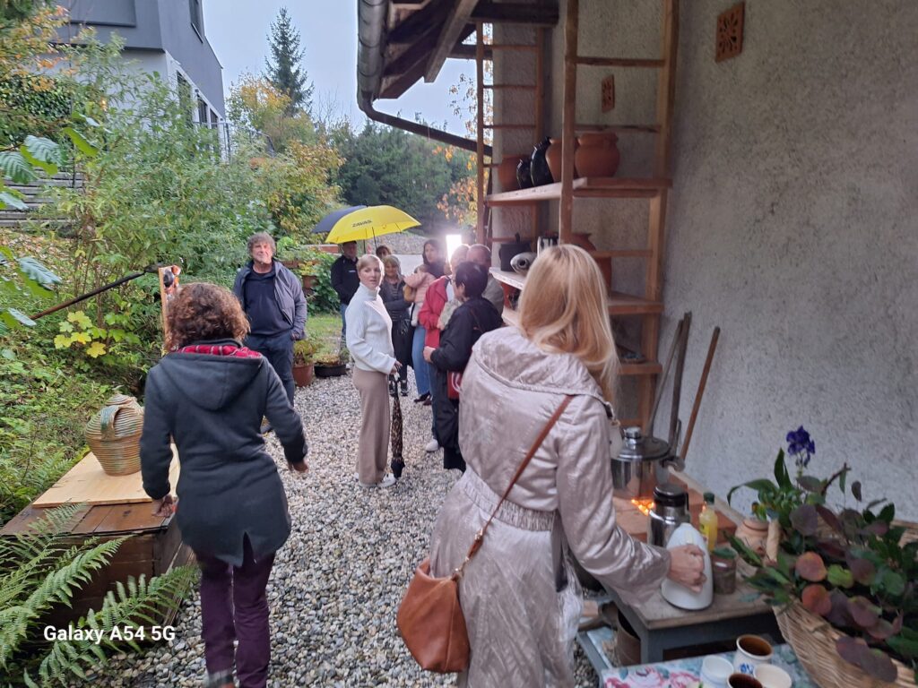 The opening of the exhibition 30 years later took place on a cold, rainy Tuesday. However, this did not bother us visitors too much. The opening began with a welcome speech by Tatjana Hlačer and continued with a brief summary of Polona's journey. Taja Legat Lokar revealed the characteristics and secrets of Polona's work. Visitors viewed the exhibition and enjoyed some sweets and roasted chestnuts. We warmed up the cold evening with tea and mulled wine. Visitors were also able to admire the permanent exhibition of bowls and pots that adorn the Koren homestead in Perovo.
