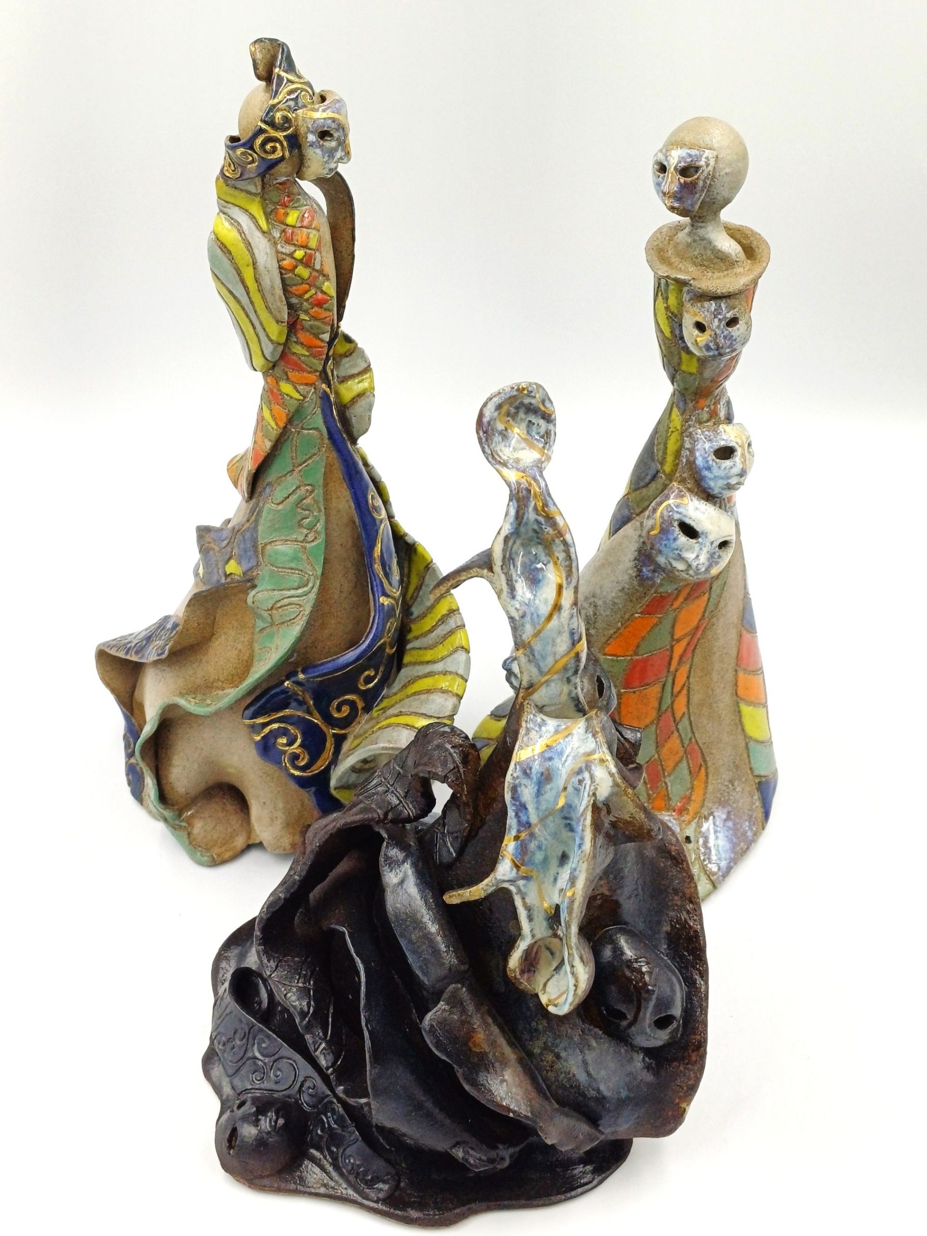 Trilogija keramičnih kipcev pa predstavlja proces, ko odvržemo maske in razpletemo vse vzorce. Takrat nastopi svoboda. Kot oseba ne obstajamo več, identiteta pa ostaja samo kot nuja delovanja v prostoru in času.